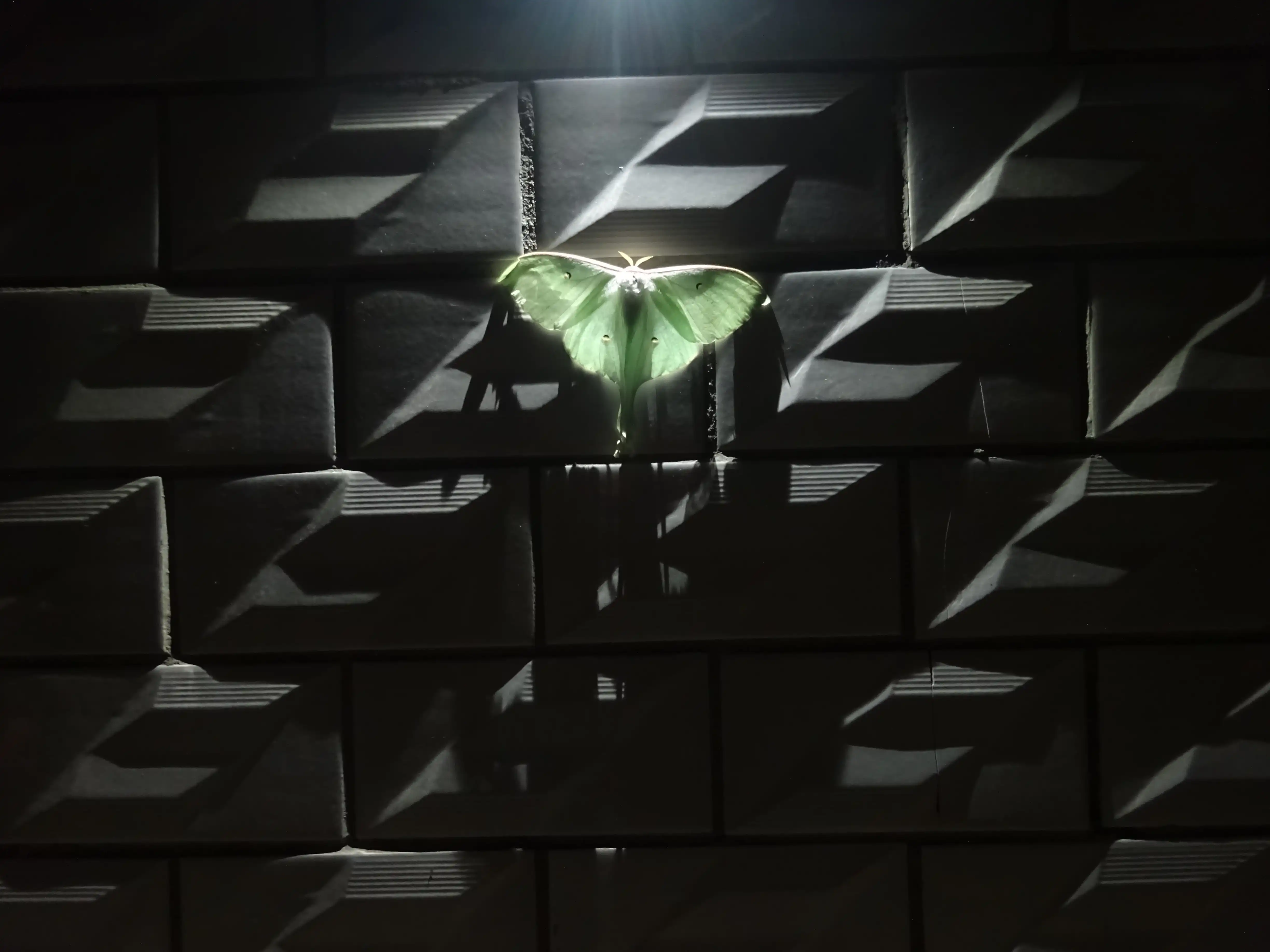 这么安生(河南话,安静、不闹腾的意思)的昆虫,还真没见过,正好给你也来个特写,便把它小心地放到墙上,上面放个手电模拟月亮,省的它迷劲儿过去了,乱跑。