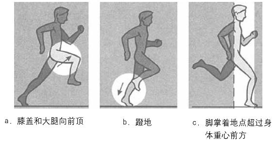 - 跨大步的跑法非但不能使转换支撑点的速度加快,反而会使其变慢,而且还会受到重力的干扰,降低身体前进的速度。