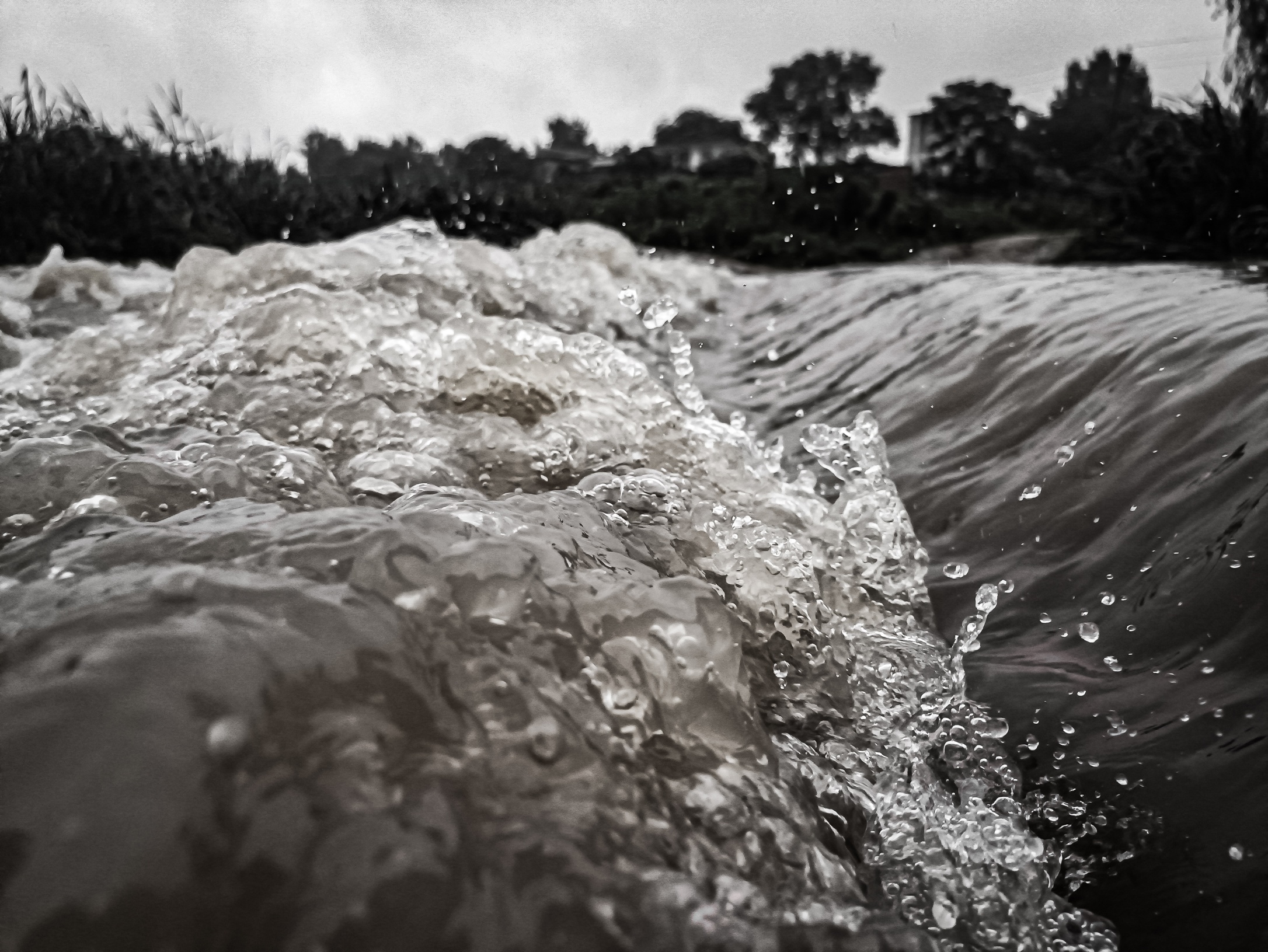 连日大雨,河水漫涨,极近而观,颇有恶浪之姿态,摄之