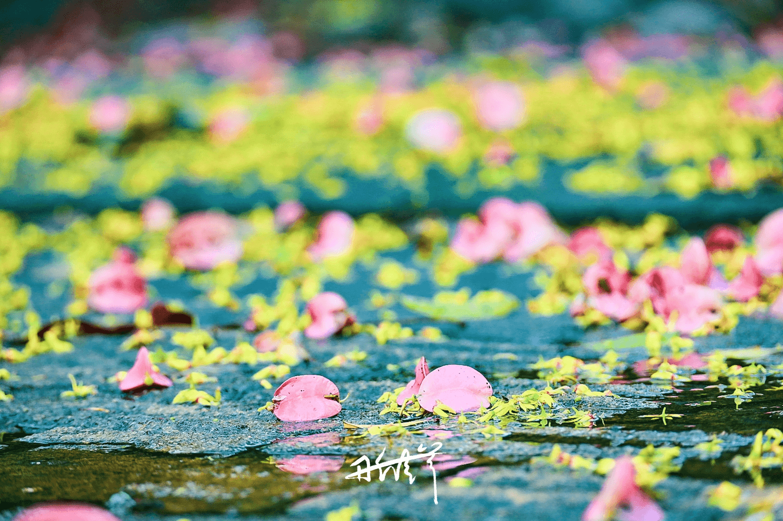 娇艳的花/果被雨水冲了一地,