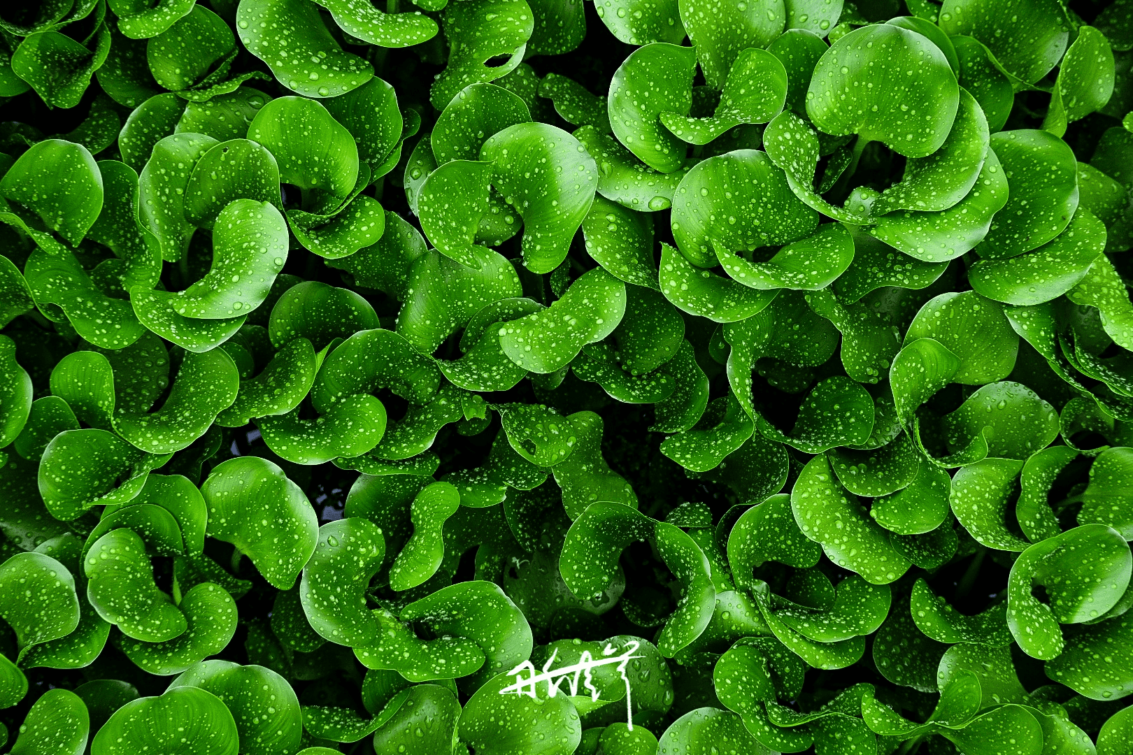 稻田、野花、水葫芦,闪着绿光,