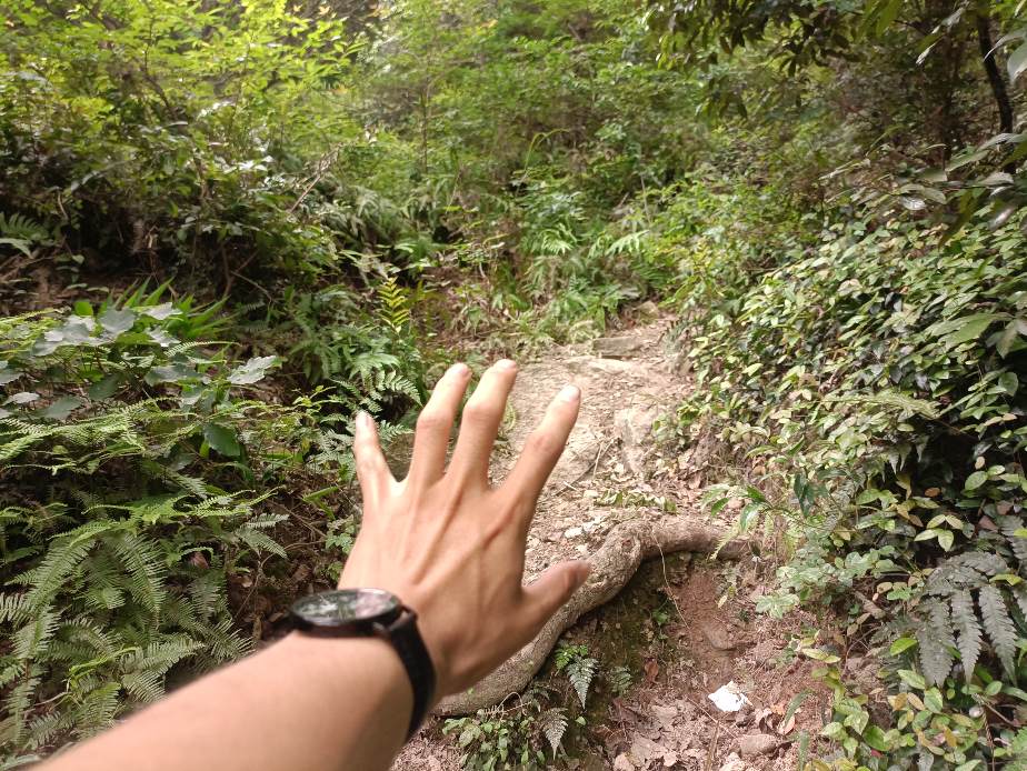树木继续低垂,小路越发狭窄,绿色越发逼仄。越往上爬,路越难走,但从路上的痕迹来看,是有人走过的,所以我并不是特别害怕,总归是能走出去的。然而因为有蛇的阴影笼罩在心间,我浑身冒汗,非常紧张。