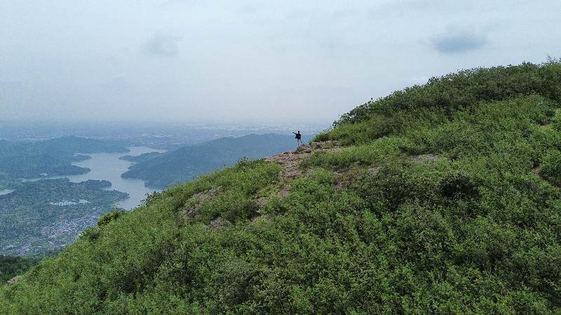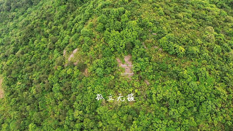 心里没底,不知道离山顶/主路还有多远,便让无人机飞起来探路。无人机飞了60m后,发现我周围还全都是树,心里凉了半截。