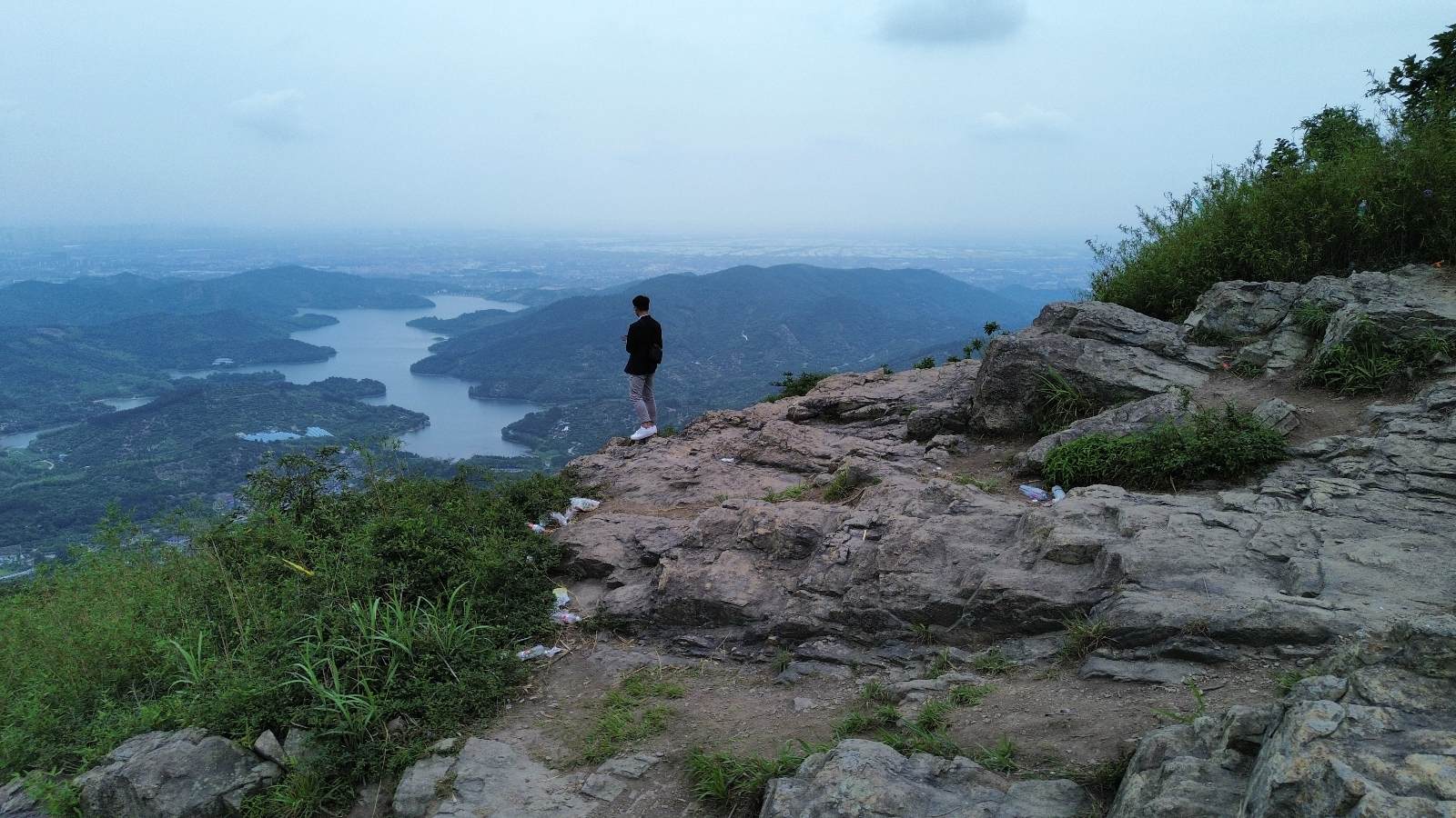 不到五分钟,发现远处有光亮,于是加足马力爬,终于抵达了『大裸岩』处,休息时候看到旁边有个塑料袋,心里说不出来的高兴。