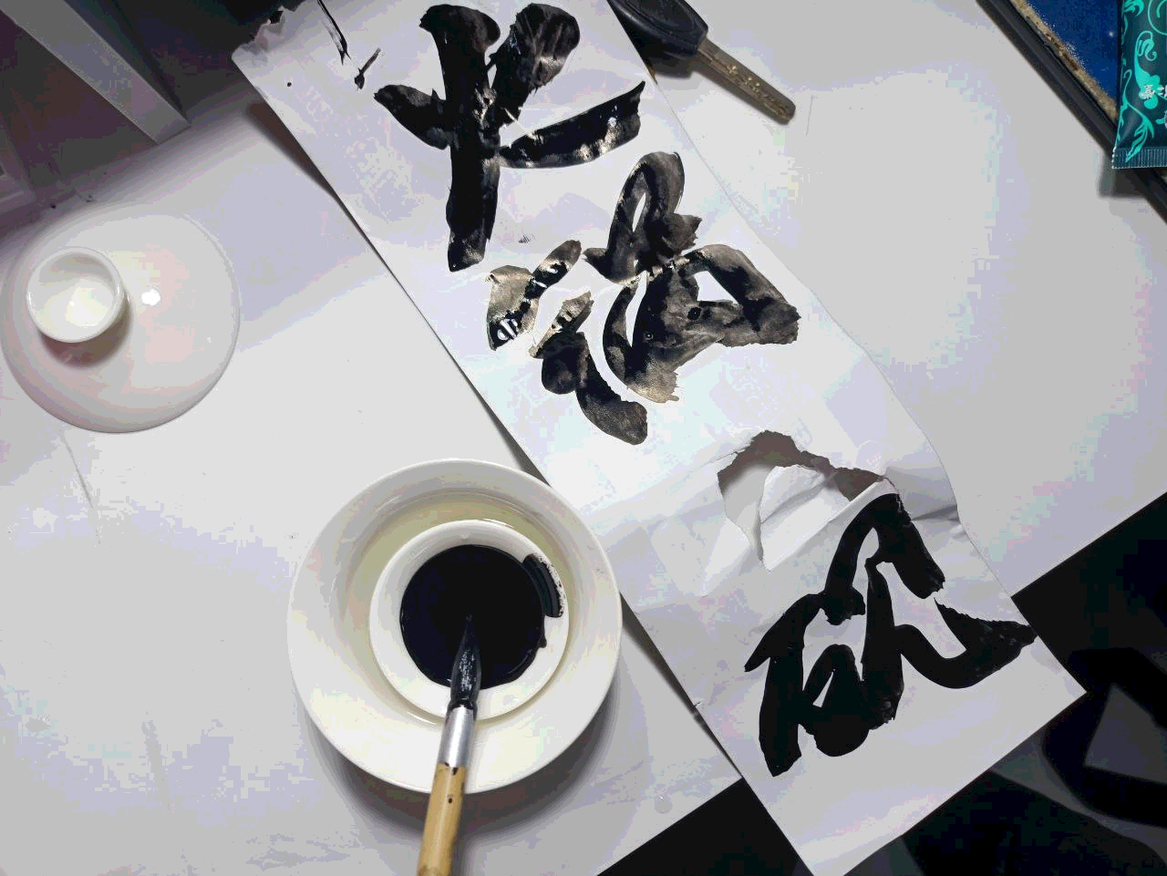 今晚想到可以把厂里端午节发的茶具利用上,做个升级版的简易火锅砚台(小杯放大杯),于是乎: