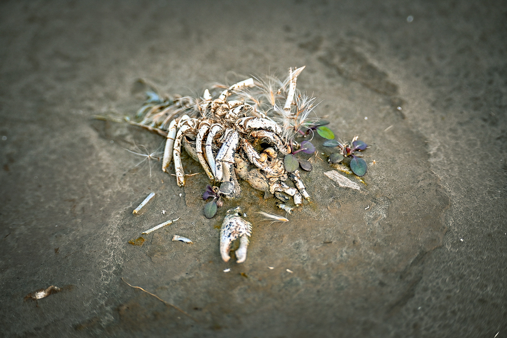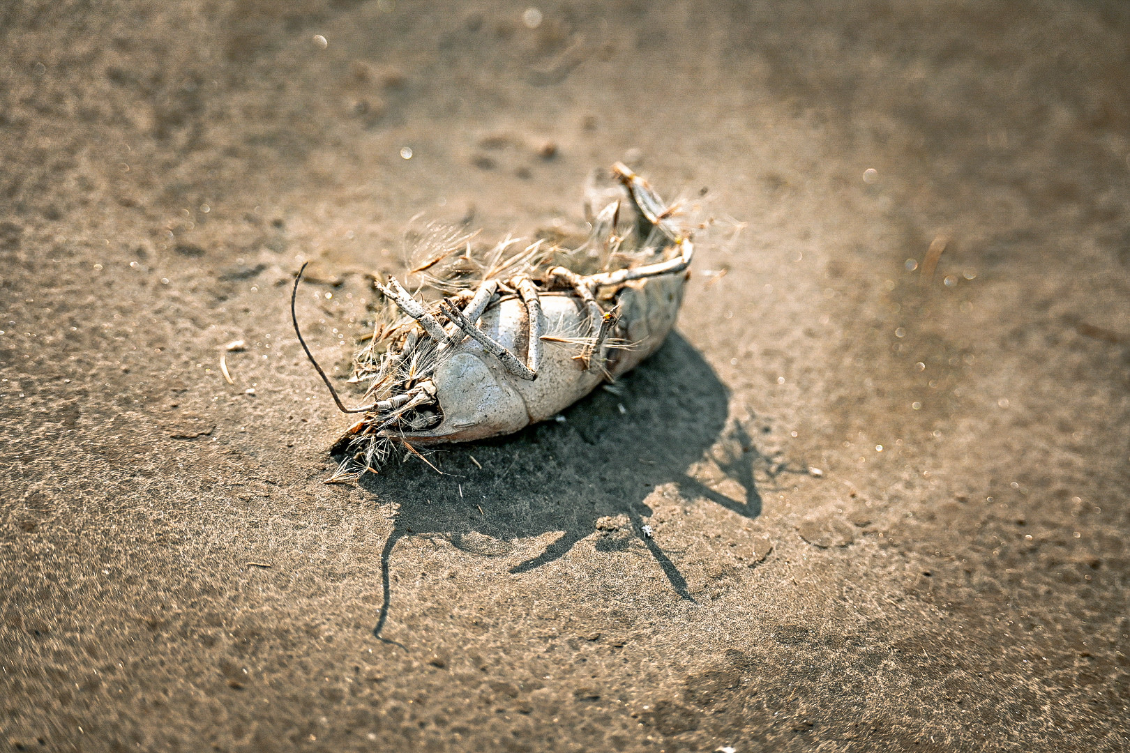 灰色的壳被晒成了红色,