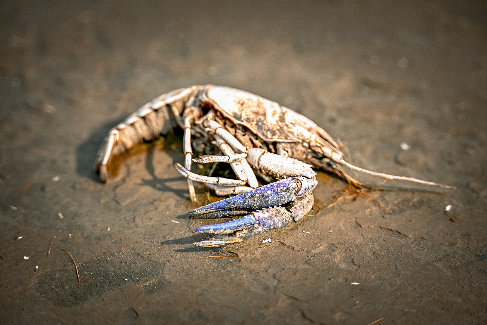 一只侥幸逃脱过水鸟猎杀的龙虾,