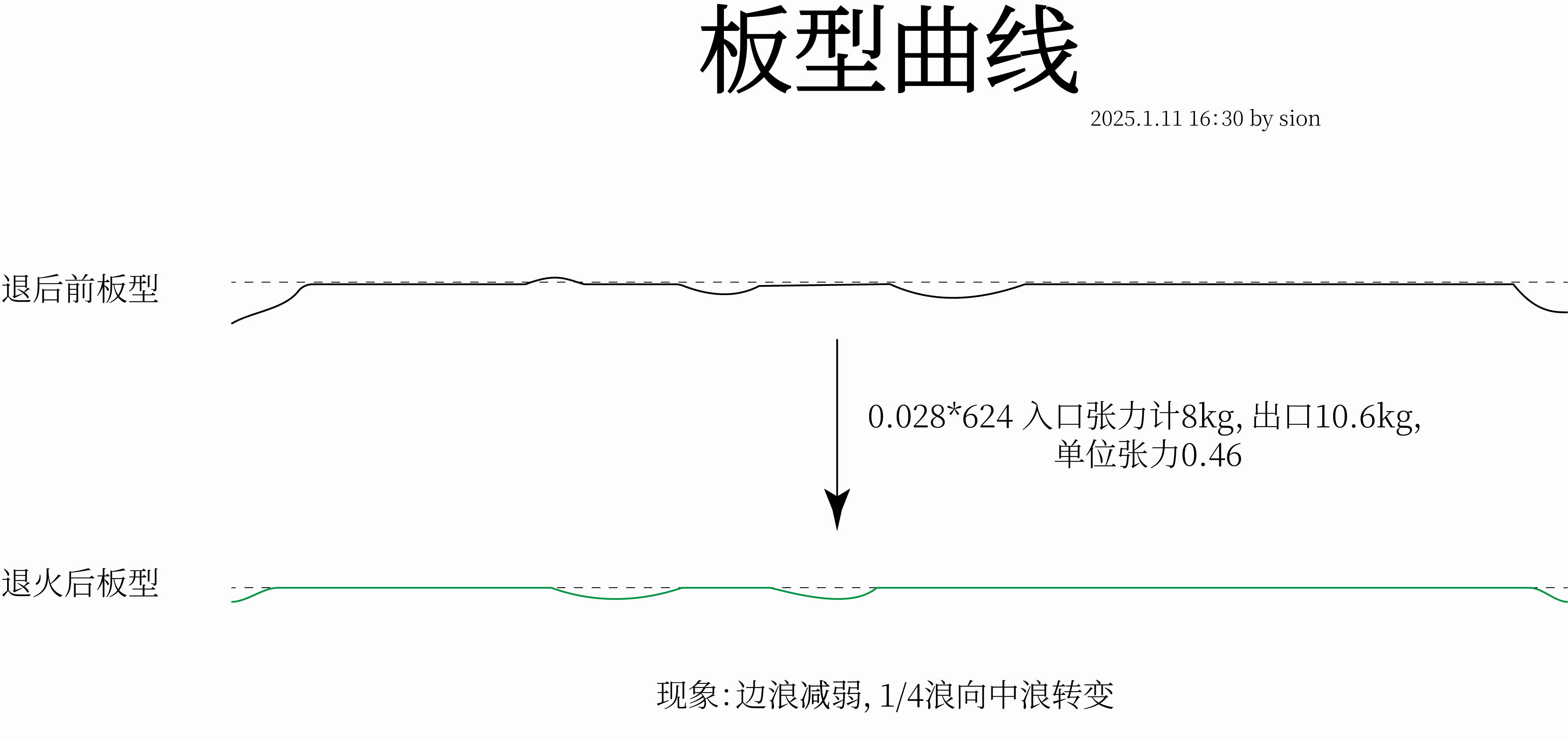 - 来自上游:当冷轧轧制不均时,带钢表面会出现局部的大塑性变形,加工硬化后沿宽度方向上出现不均匀的塑性变形导致板型变化。